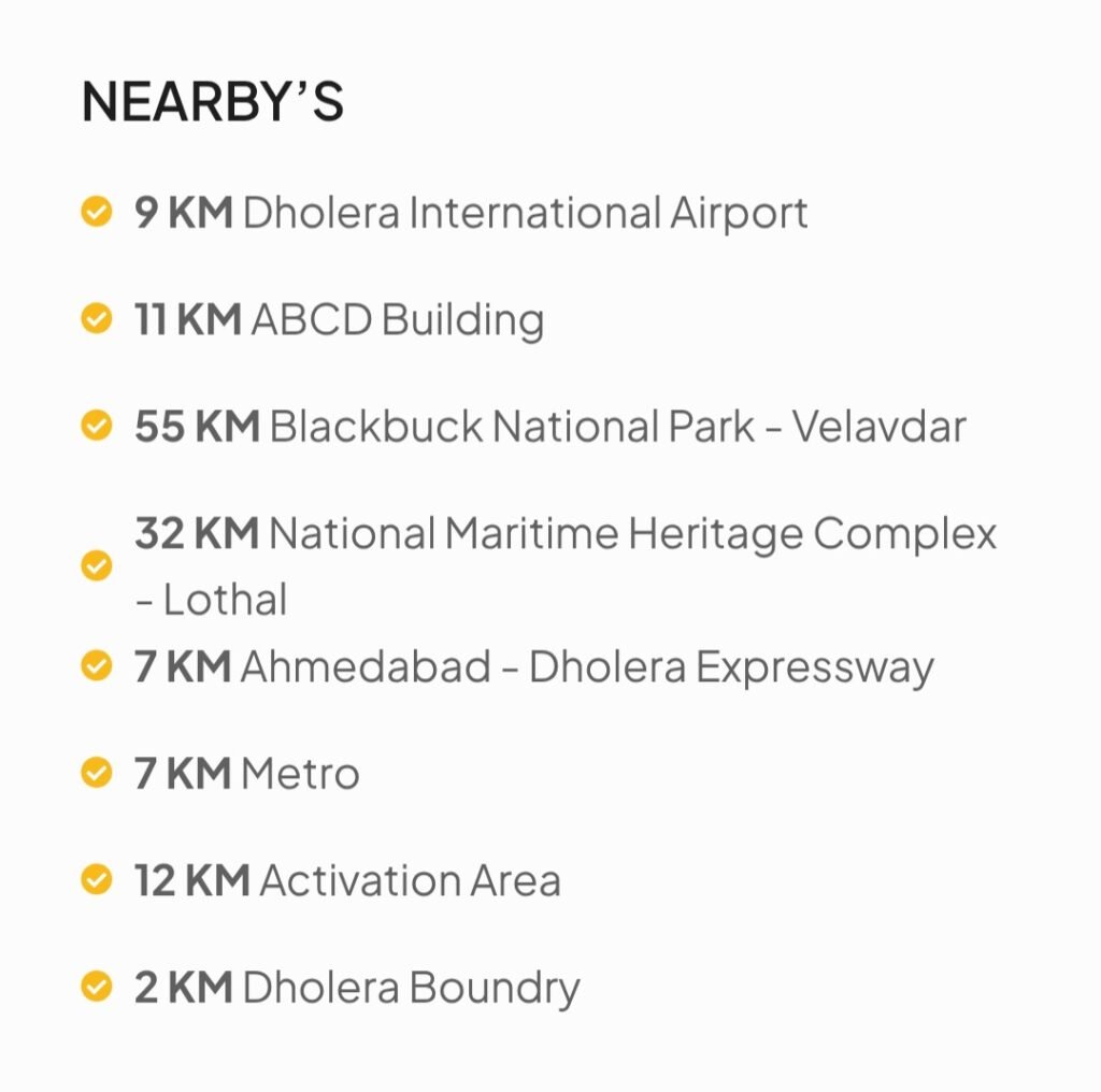 An exclusive residential oasis near Dholera Smart City, Mayur Kalp harmonizes nature’s tranquillity with cutting-edge innovation and elite connectivity. Seamlessly linked to the Airport, Highway, and Expressway, it offers effortless urban access while preserving serene living.